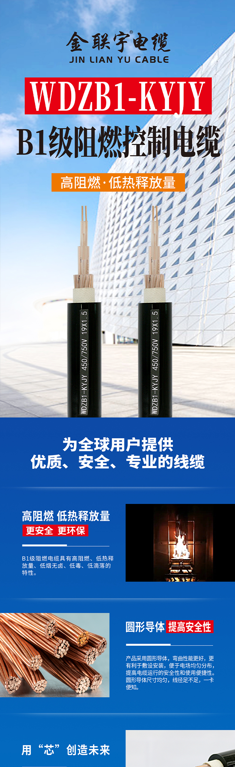 字母含義:W:無鹵;D:低煙;Z:阻燃;YJ:交聯聚乙烯絕緣;Y:聚烯烴護套;2:雙鋼帶鎧裝;3:聚烯烴外護套;B1-阻燃1級電纜